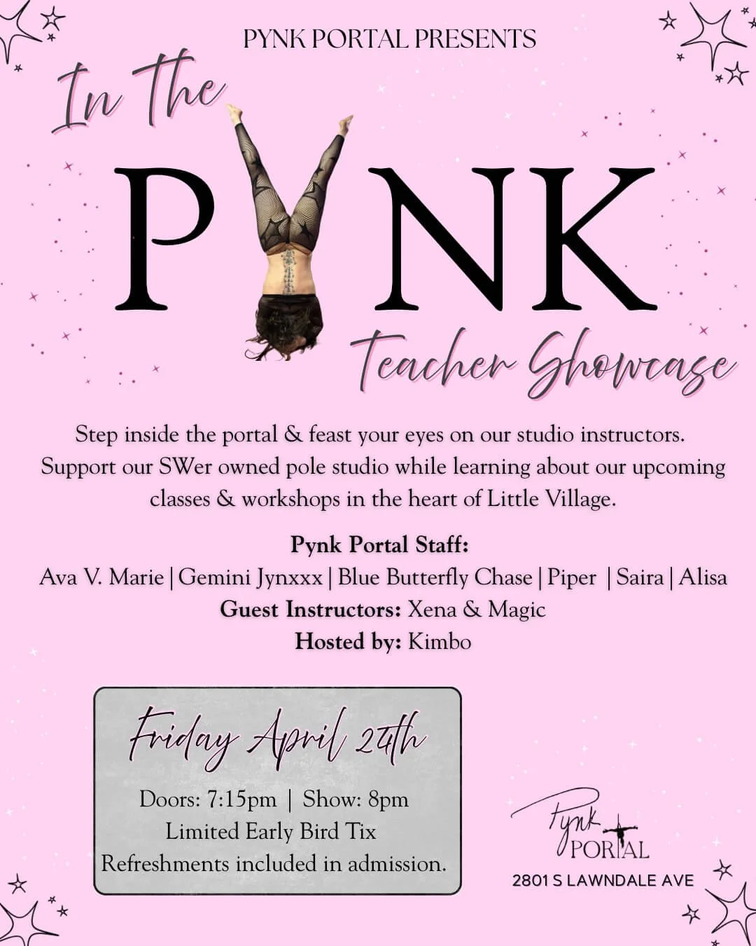 Pynk Portal Pole’s teacher showcase highlighting weekly & guest instructors and an opportunity to visit our studio & meet the staff.